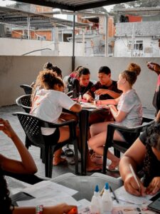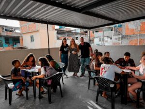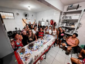 Durante a visita, a equipe acompanhou atividades que aconteciam simultaneamente na comunidade, como cursos de culinária voltados às moradoras da Mangueira e oficinas de desenho para crianças. O clima de integração e troca de experiências marcou o encontro, que evidenciou o papel dos projetos locais no fortalecimento social, educacional e ambiental da comunidade.